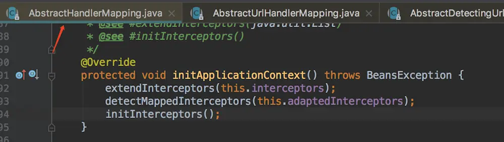 同时 AbstractHandlerMapping 继承 WebApplicationObjectSupport,初始化时会自动调用模板方法 initApplicationContext