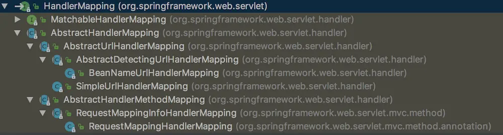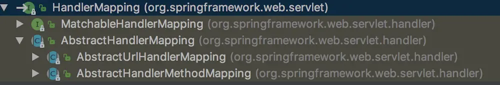 大致上分为两大类 AbstractUrlHandlerMapping 和 AbstractHandlerMethodMapping。都继承自 AbstractHandlerMapping 抽象类,实现 HandlerMapping 接口。