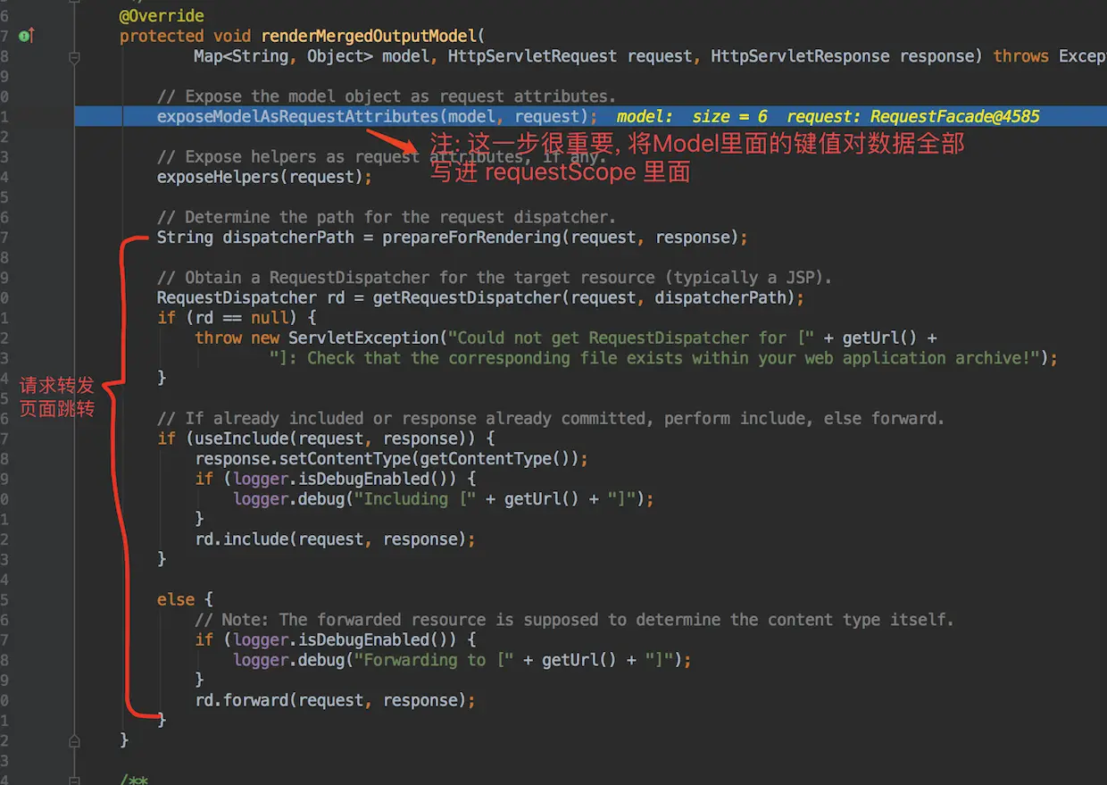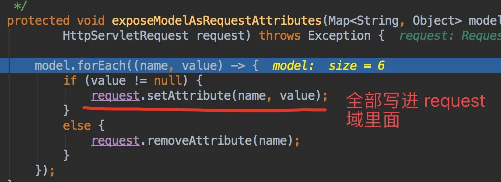 5.1 顺带看下 Model 数据写进 requestScope 过程,进入 exposeModelAsRequestAttributes(..) 方法